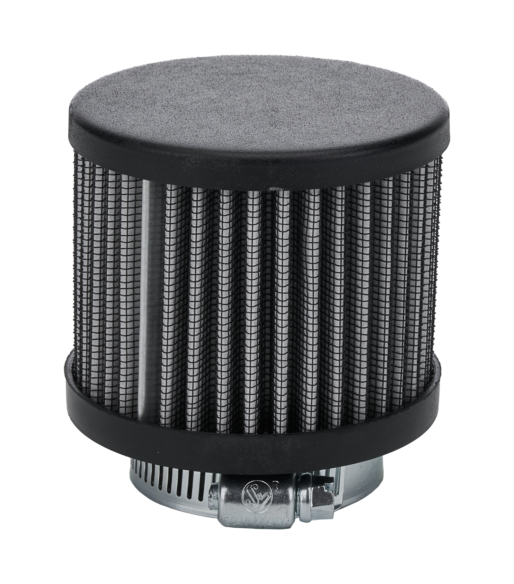 Product Description Breather - Clamp-On - Round - 1-3/8 in OD Tube - Reusable - Steel - Black Powder Coat - Each