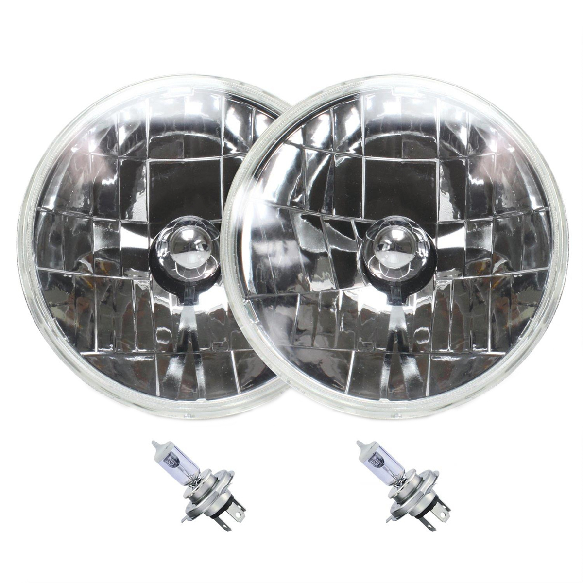 Headlight - Snake-Eye - 7 in OD - H4 Bulb - Glass / Steel - Universal - Pair