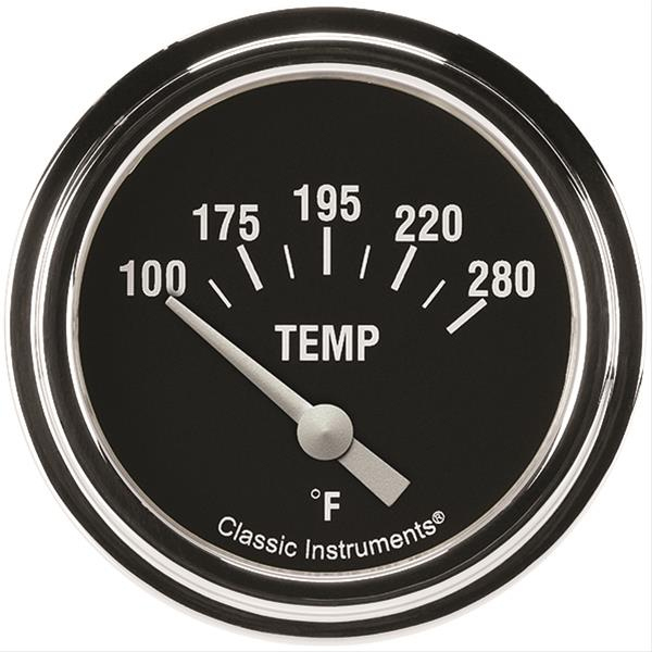 Product Description Water Temperature Gauge - Hot Rod - 100-280 Degrees F - Electric - Analog - Short Sweep - 2-5/8 in Diameter - 1/4 in NPT Thread Sender - Low Step Stainless Bezel - Flat Lens - Black Face - Each