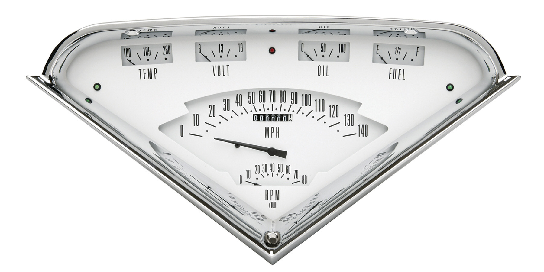 Product Description Gauge Kit - Tach Force - Analog - Water Temperature / Voltmeter / Oil Pressure / Fuel Pressure / Tachometer / Speedometer - White / Chrome Panel - GM Fullsize Truck 1955-59 - Kit