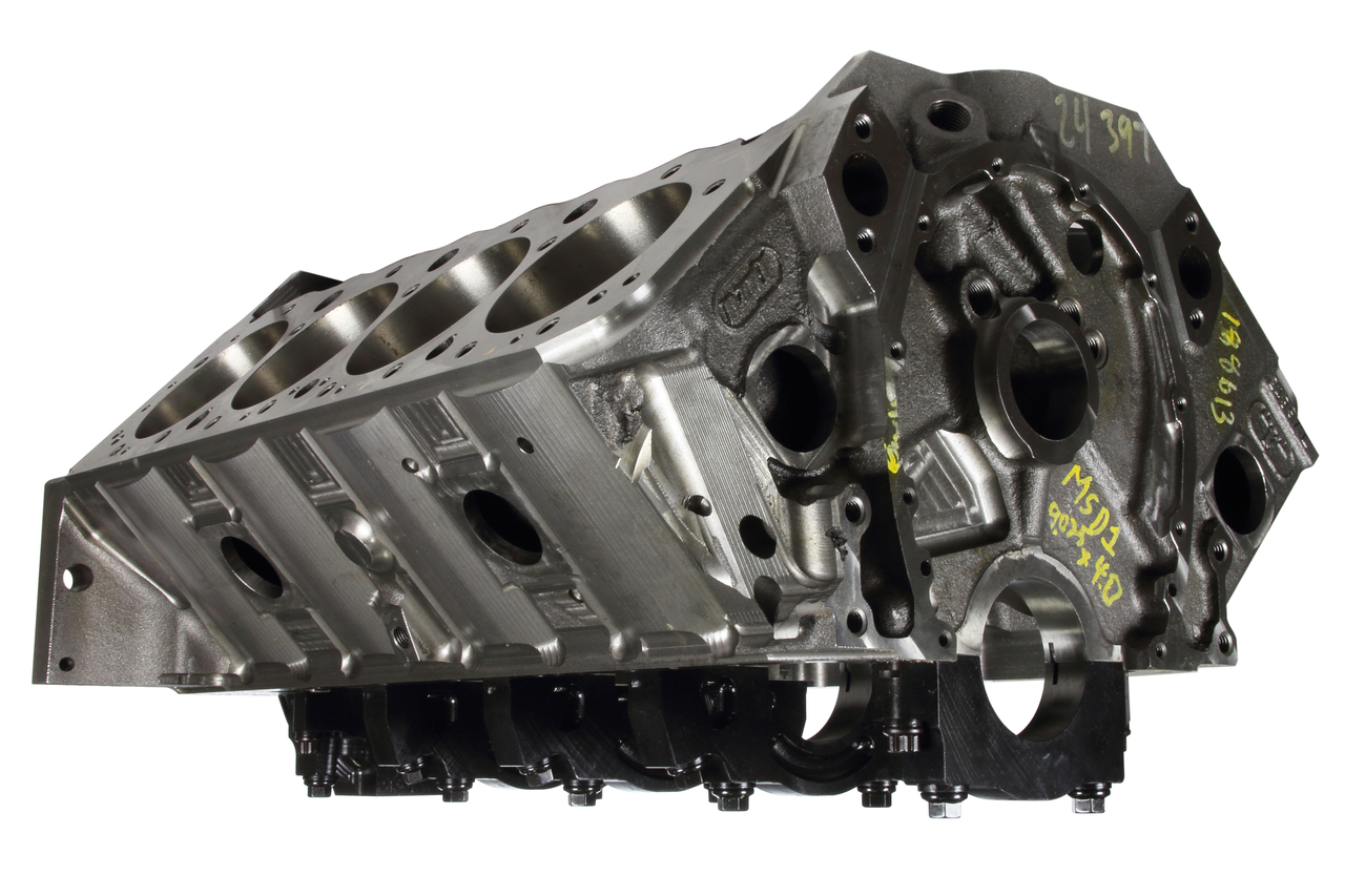 Product Description Engine - Little M - Bare Block - 4.000 in Bore - 9.025 Deck - 350 Main - 4-Bolt Main - 2-Piece Seal - Iron - Small Block Chevy - Each