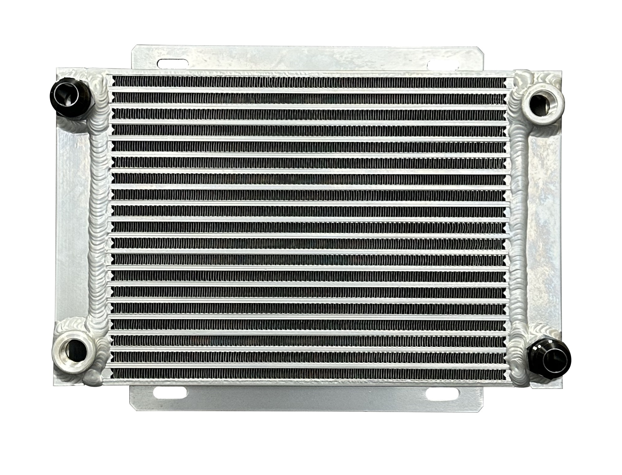 Product Description Fluid Cooler - 15.625 x 11.563 x 4.375 in - Plate Type - 12 AN Male Inlet / Outlet - Two 1/2 in NPT Female Auxiliary Ports - Aluminum - Natural - Universal - Each