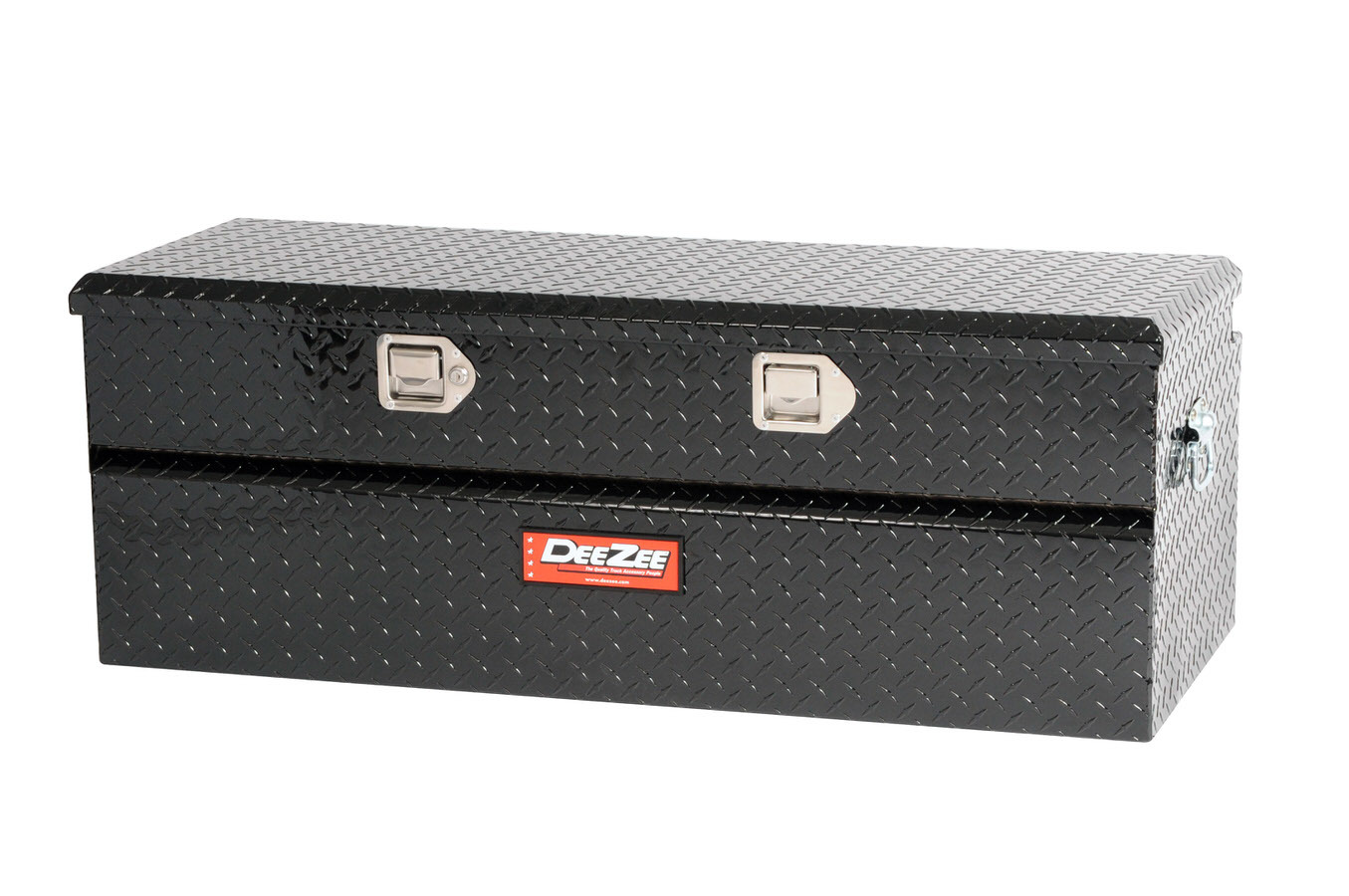 Product Description Truck Box - Red Label - Toolbox - Single Lid - 46.50 in Long - 19 in Wide - Aluminum - Black Powder Coat Diamond Plate - Universal - Each