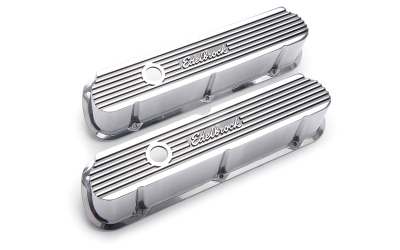 Product Description Valve Cover - Elite II - Tall - Finned - Baffled - Breather Hole - Edelbrock Logo - Aluminum - Polished - Small Block Ford - Pair
