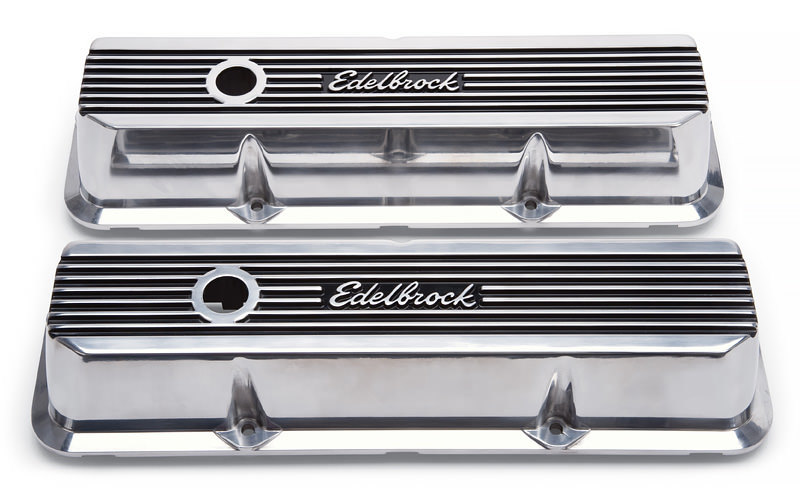 Product Description Valve Cover - Elite II - Short - Finned - Breather Hole - Edelbrock Logo - Aluminum - Polished - Ford FE-Series - Pair