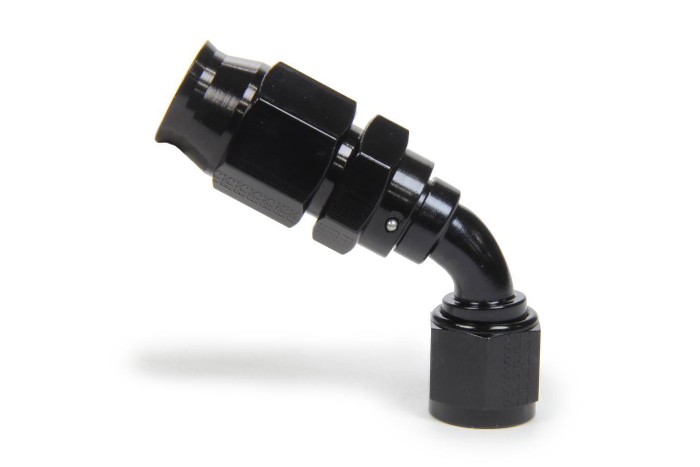 Product Description Fitting - Hose End - Race-Rite - PTFE Hose - 60 Degree - 8 AN Hose to 8 AN Female - Swivel - Aluminum - Black Anodized - Each