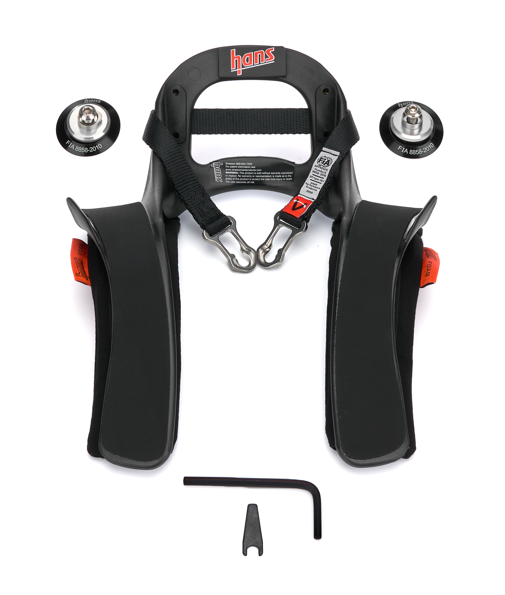 Product Description Head and Neck Support - Hans III - SFI 38.1 - Sliding Post Tether - Helmet Anchor - Plastic - Black - Youth - Kit
