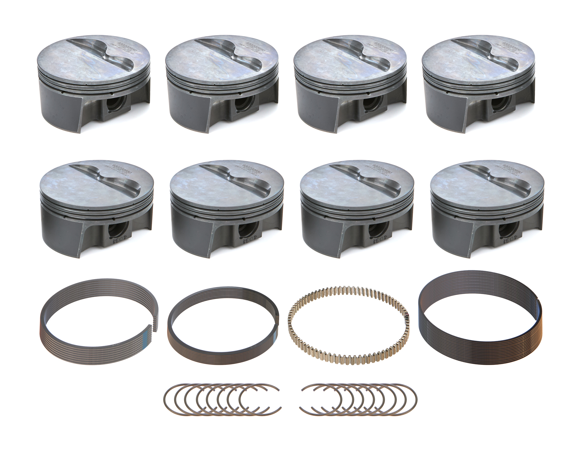 Product Description Piston and Ring - PowerPak - Flat Top - Forged - 4.050 in Bore - 1.0 x 1.0 x 2.0 mm Ring Grooves - Minus 4.10 cc - Small Block Chevy - Kit