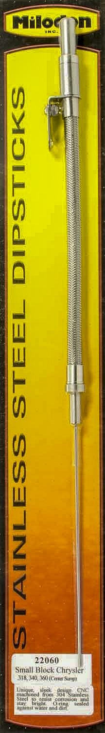 Product Description Engine Oil Dipstick - Block Mount - Billet / Braided Stainless - Natural / Polished - Small Block Mopar - Each