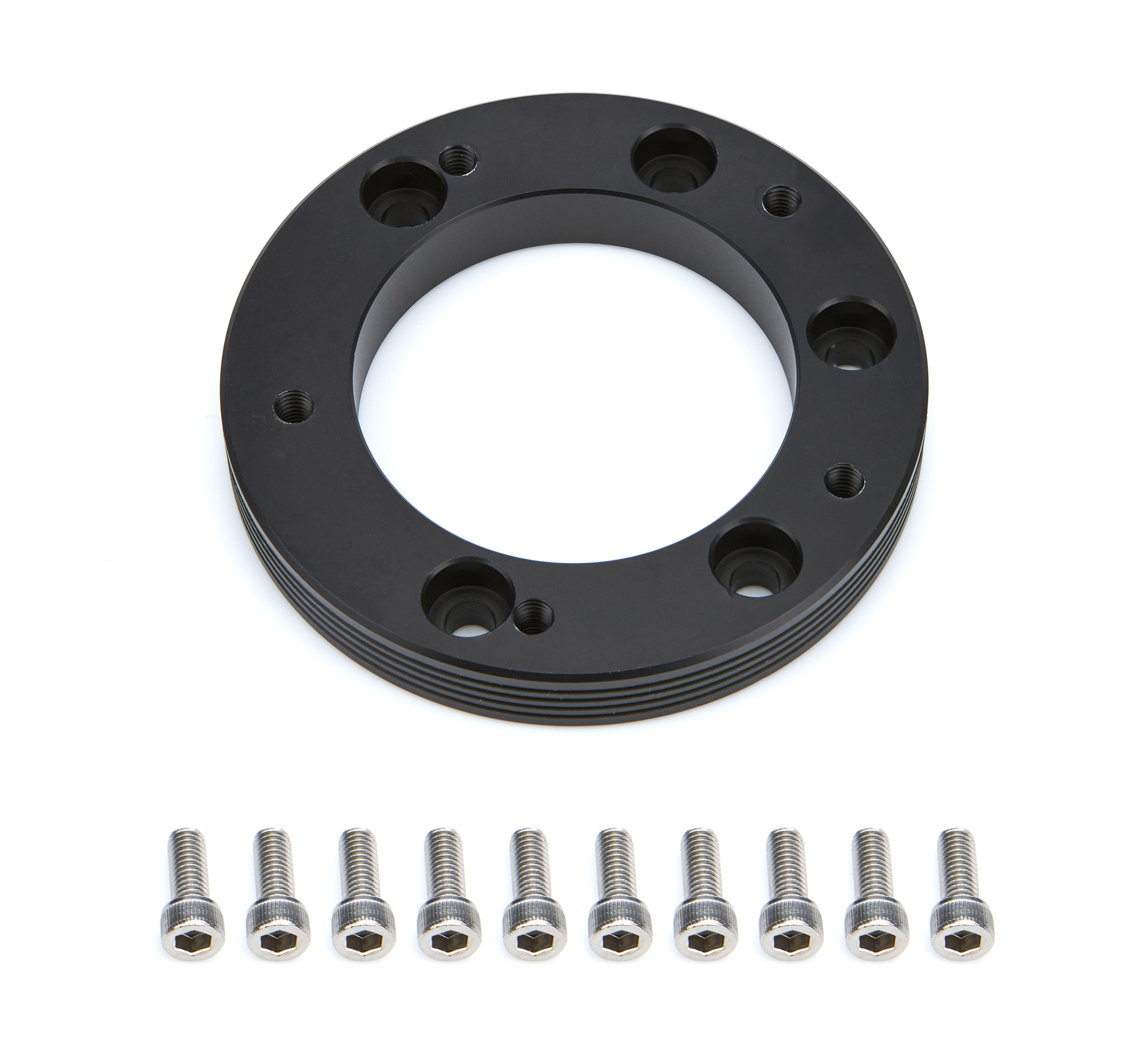 Product Description Steering Wheel Adapter - 5-Bolt Wheel to 6-Bolt Quick Release Hub - Hardware Included - Aluminum - Black Anodized - Each
