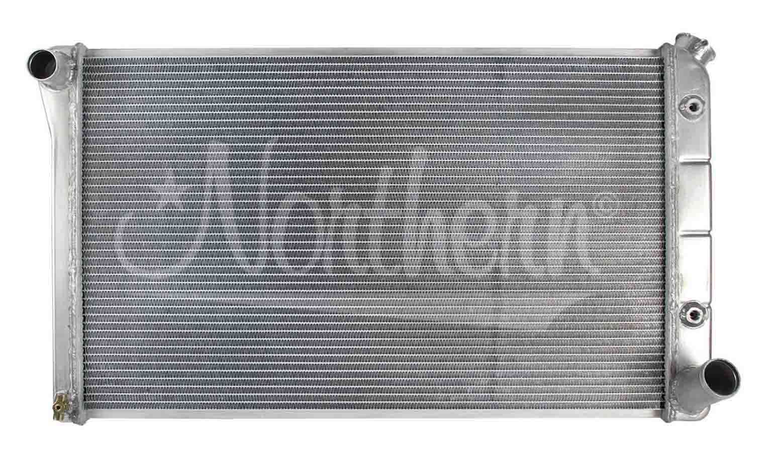 Product Description Radiator - 32.75 in W x 18.375 in H x 3.125 in D - Driver Side Inlet - Passenger Side Outlet - Aluminum - Natural - Automatic - GM Fullsize Truck 1967-72 - Each
