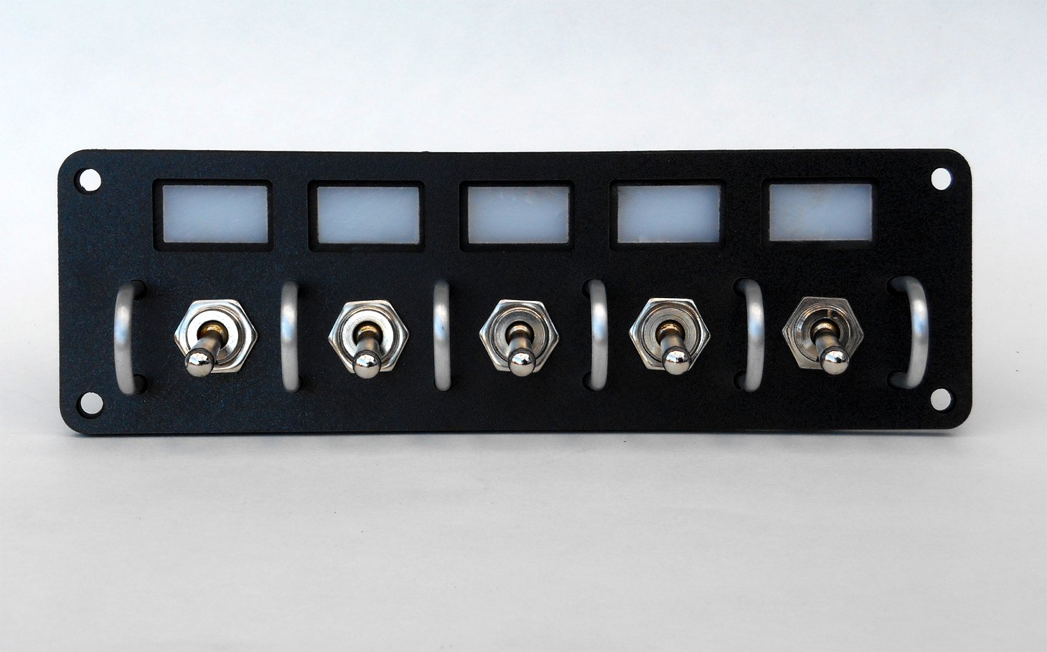 Product Description Switch Panel - Dash Mount - 7 x 2 in - 5 Toggles - LED Lighted - Label Sheet Included - Black - Kit