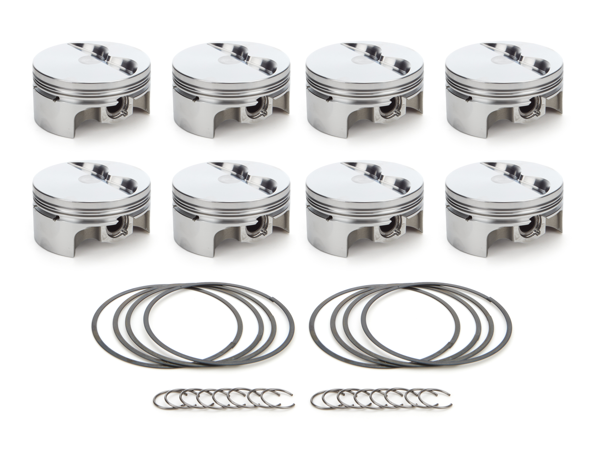 Product Description Piston - AutoTec - Forged - Flat Top - 4.030 in Bore - 1.5 x 1.5 x 3.0 mm Ring Grooves - Minus 5.00 cc - Coated Skirt - Small Block Chevy - Set of 8