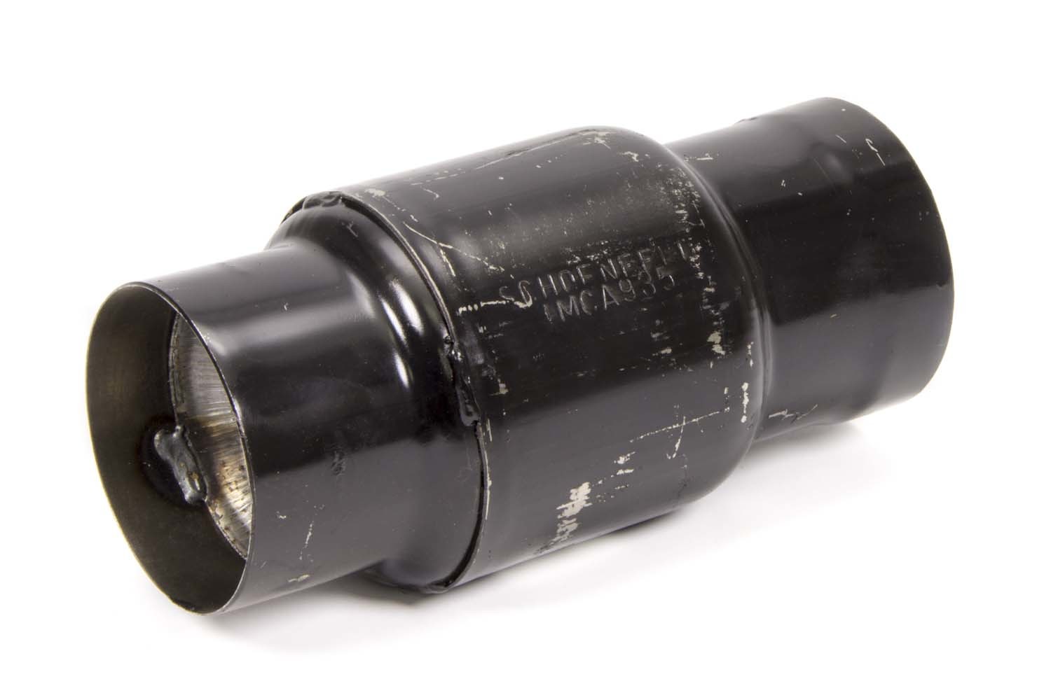 Product Description Muffler - 3.5 in Center Inlet - 3.5 in Center Outlet - 4 in Diameter Body - 9 in Long - Steel - Black Paint - Each