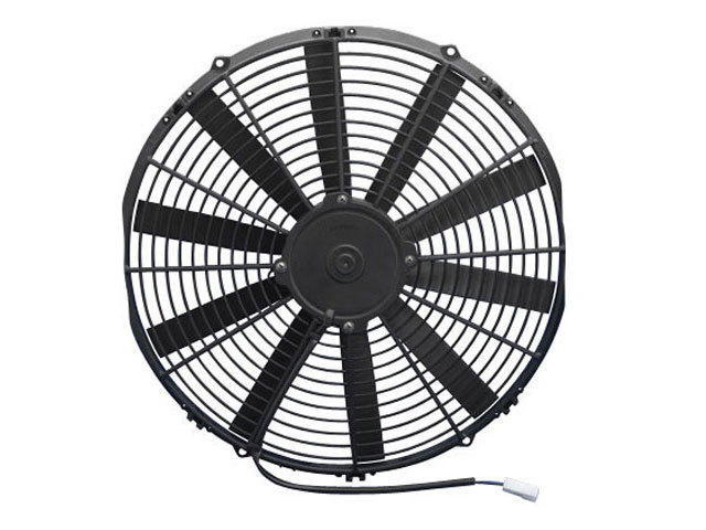 Product Description Electric Cooling Fan - Low Profile - 16 in Fan - Pusher - 1298 CFM - 12V - Straight Blade - 16.313 x 15.75 in - 2 in Thick - Plastic - Each