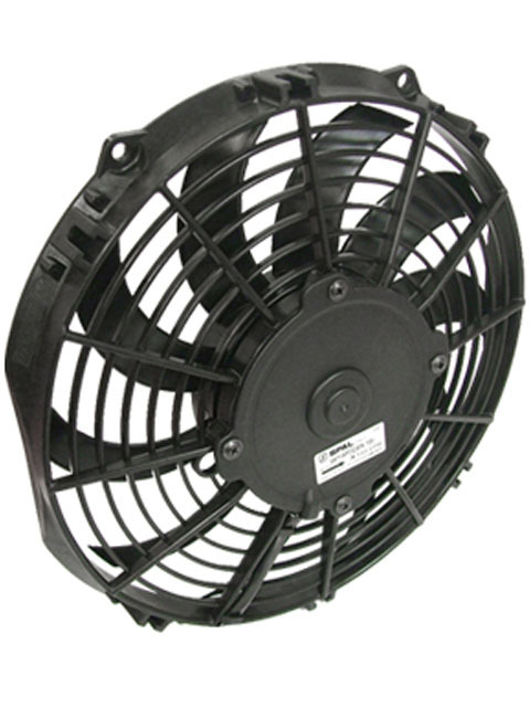 Product Description Electric Cooling Fan - Low Profile - 10 in Fan - Puller - 802 CFM - 12V - Curved Blade - 11.25 x 10.563 in - 2 in Thick - Plastic - Each