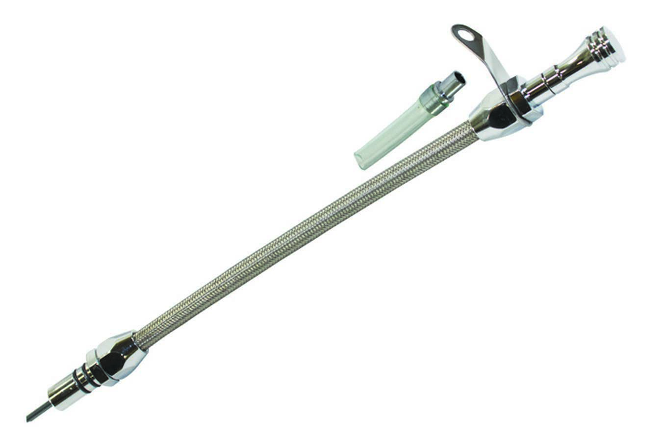 Product Description Transmission Dipstick - Flexible - Transmission Mount - OEM Length - Braided Stainless - Aluminum - Chrome - TH400 - Each