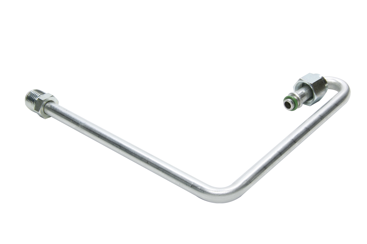Product Description Refrigerant Hard Line - Bottom Exit - 6 AN Male O-Ring / Female O-Ring Fittings - Aluminum - Natural - Condenser - Ford 1932-37 - Each