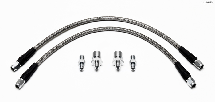 Product Description Brake Hose Kit - Flexline - DOT Approved - 16 in - 3 AN Hose - 3 AN Straight Inlet - 3 AN Straight Outlet - Fittings Included - Braided Stainless - Front - Mazda Miata 1995-2005 - Kit