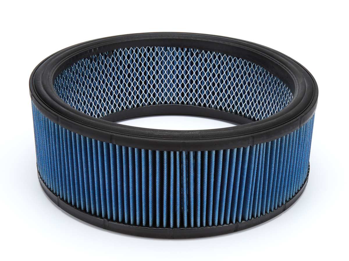 Product Description Air Filter Element - Low Profile - Round - 14 in Diameter - 5 in Tall - Wire Mesh Included - Reusable Cotton - Blue - Each